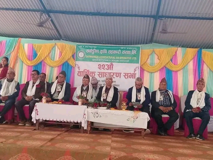 नवलपरासी । सर्वाङ्गीण कृषि सहकारी संस्था लि. सुनवल १ नवलपरासीको २२ औं वार्षिक साधारण सभा शनिबार सम्पन्न भएको छ । साधारणसभाको उद्घाटन गर्दै प्रमुख अतिथि एवं सुनवल नगरपालिका वडा नं. १ का वडाअध्यक्ष मान बहादुर थापाले सहकारीले कृर्षिको प्रर्वद्धन गर्दै कृषकलाई सहुलियत रुपमा बीउ मल उपलब्ध गराएको भन्दै आगामी दिनमा अझै सेवा विस्तार गर्दै जानुपर्नेमा जोड दिनुभयो