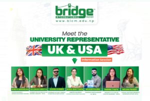 काठमाडौं, नेपाल – ब्रिज इन्टरनेशनल एजुकेशनल कन्सल्टेन्सी ले फेब्रुअरी १२ मा नयाँ बानेश्वर, काठमाडौंस्थित आफ्नो कार्यालयमा यूके र यूएसए विश्वविद्यालय जानकारी सत्र सफलतापूर्वक आयोजना गर्यो। यो कार्यक्रमले उच्च शिक्षाको अवसर खोजिरहेका विद्यार्थीहरूलाई प्रत्यक्ष रूपमा विश्वविद्यालयका प्रतिनिधिहरूसँग अन्तर्क्रिया गर्न, अध्ययन अवसरहरूको जानकारी लिन र बेलायत तथा अमेरिका अध्ययन गर्ने योजना बनाउन मद्दत गर्यो।