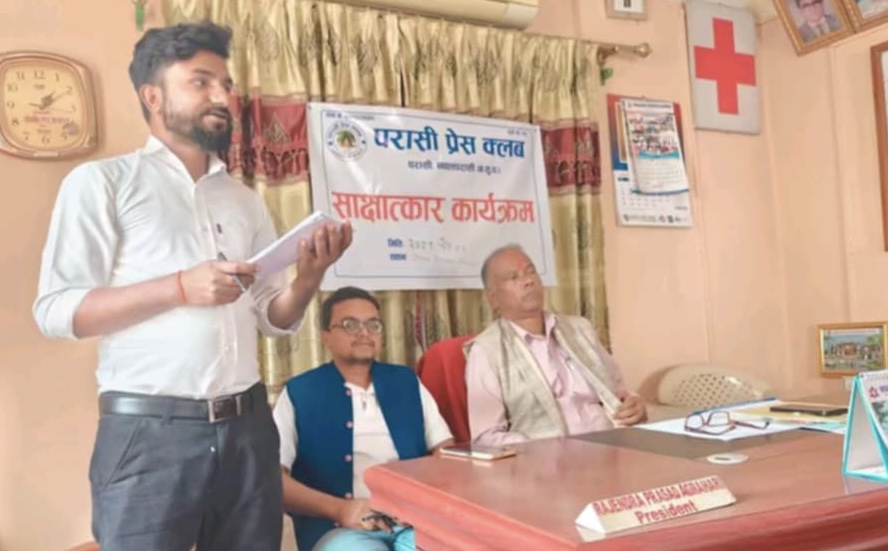 परासी प्रेस क्लवका अध्यक्ष मोहन पौडेलको अध्यक्षता तथा रेडक्रस जिल्ला शाखाका सभापति अग्रहरीको प्रमुख आतिथ्य, प्रेस क्लवका महासचिव रञ्जित शर्माको सञ्चालत तथा सचिव सुरेश यादवको स्वागत मनतव्य रहेको उक्त कार्यक्रममा रेडक्रस लुम्बिनी प्रदेशका कोषाध्यक्ष हैदर अलि मोमिन, जिल्ला शाखाका उपसभापति कृष्णप्रसाद लामिछाने, उपमन्त्री एवं रक्त सञ्चार सेवा केन्द्र संयोजक सुरज केसी, जिल्ला सदस्य एवं विपद व्यवस्थापन संयोजक अर्जुन क्षेत्री लगायतले पत्रकारहरुका जिज्ञासाको सम्बोधन गर्नुभएको थियो ।