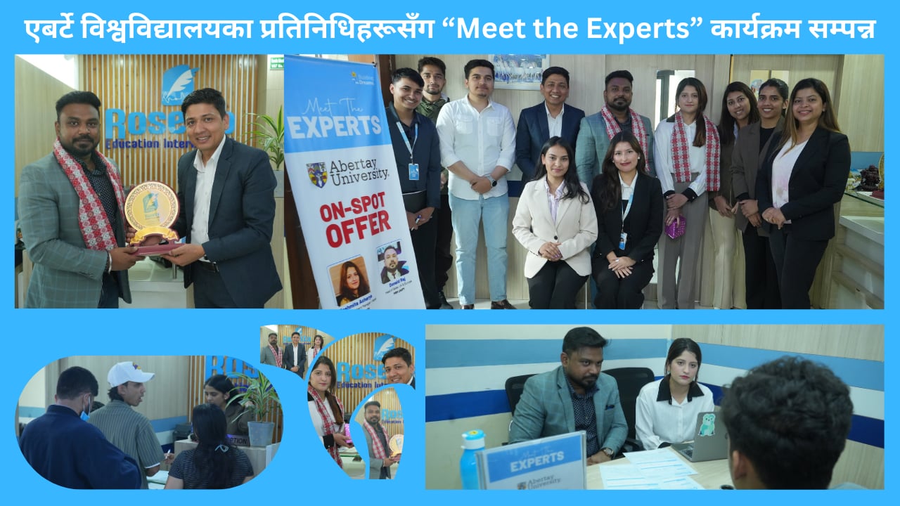 काठमाडौं, २२ अप्रिल २०२५ – रोसेट्टा एजुकेसन इन्टरनेसनलले एबर्टे विश्वविद्यालय, स्कटल्याण्डका प्रतिनिधिहरूको सहभागितामा विशेष शैक्षिक कार्यक्रम “Meet the Experts” सफलतापूर्वक सम्पन्न गरेको छ। यो कार्यक्रम २२ अप्रिल २०२५ मा रोसेट्टाको नयाँ बानेश्वरस्थित कार्यालय परिसरमा आयोजना गरिएको थियो।