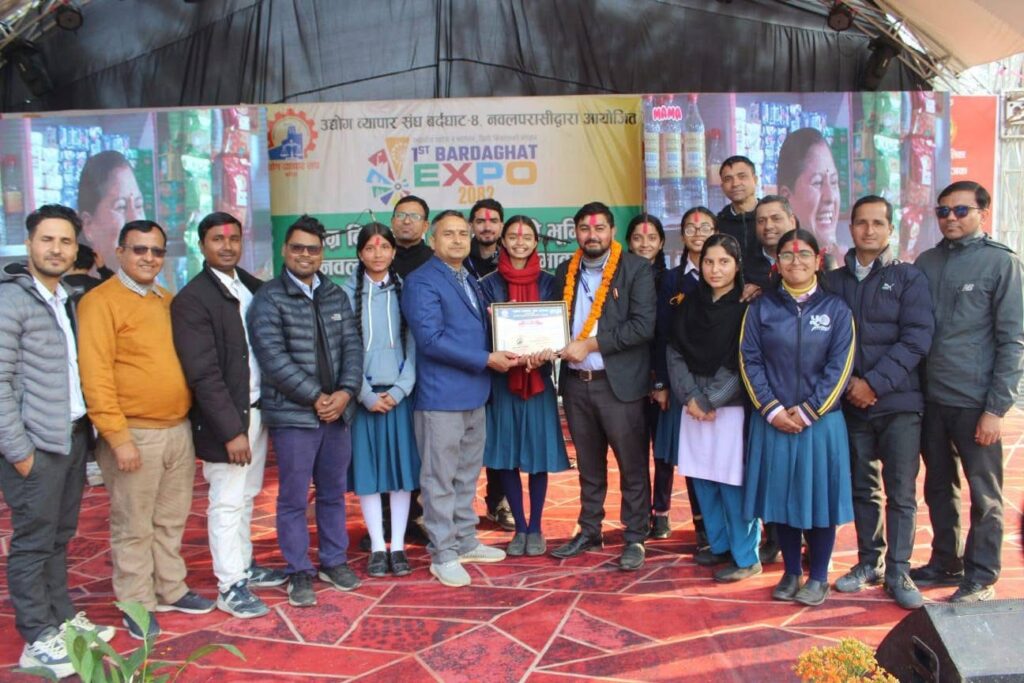 माघ २२,बर्दघाट/ उद्योग व्यापार संघ बर्दघाटको आयोजनामा जारी प्रथम बर्दघाट एक्सपो २०८२” मा विविध शैक्षिक कृयाकलाप अन्तर्गत आयोजित माबी स्तरीय विज्ञान प्रर्दशनी प्रतियोगितामा दाऊन्ने देवी माध्यमिक विद्यालयका विद्यार्थी समूहले तयार पारेको स्मार्ट सिटी अवधारणाको प्रोजेक्ट वर्क प्रथम भएको छ ।