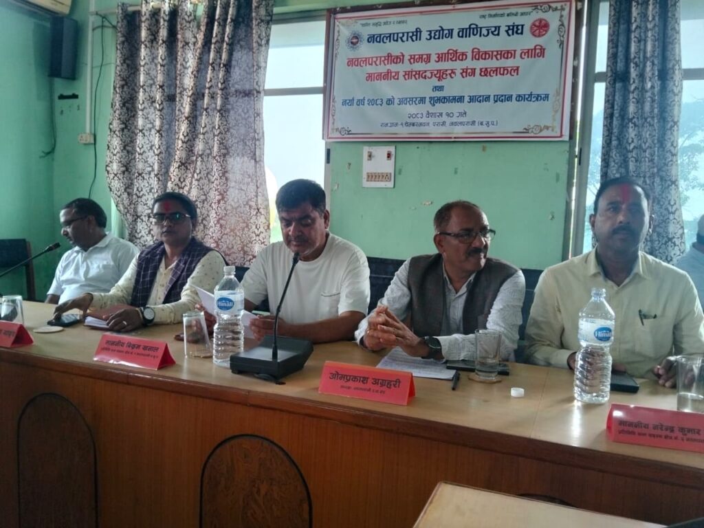 नवलपरासीको समग्र आर्थिक विकास र औद्योगिक समृद्धिका लागि उद्योग वाणिज्य संघ, नवलपरासीले प्रतिनिधि सांसदहरूसंग छलफल गरेको छ।