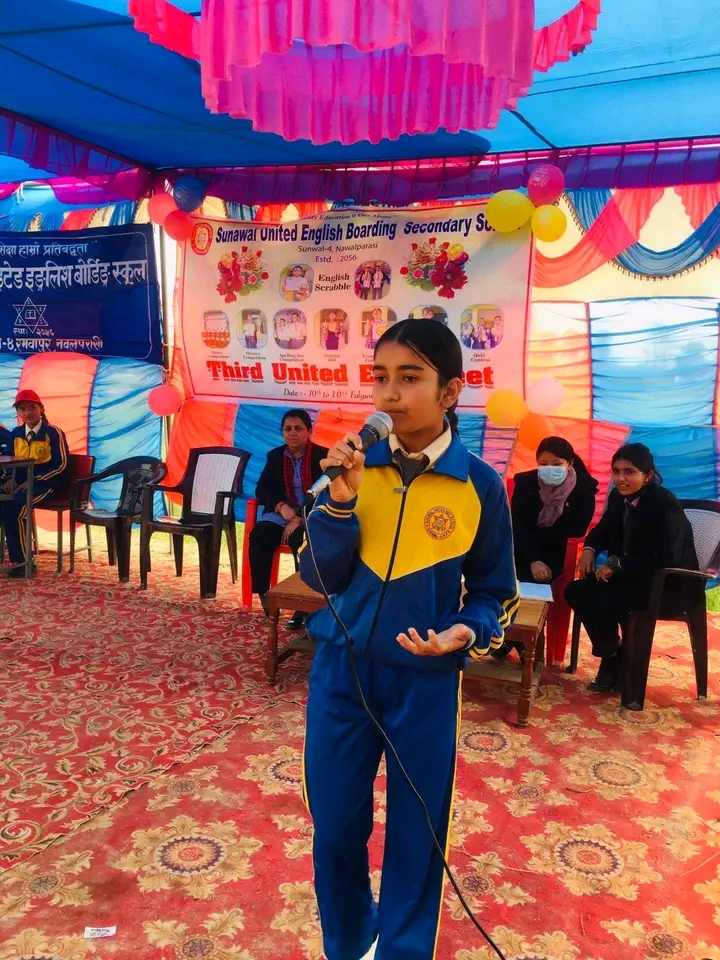 न्यूज फायर, सुनवल । पश्चिम नवलपरासीको सुनवल ४ स्थित सुनवल युनाईटेड इङ्गलिस वोर्डिङ सेकेण्डरी स्कुलमा आज देखी तेस्रो युनाईटेड इ.सि.ए. मिट सुरु भएको छ । आज विद्यालयमा अतिरिक्त क्रियाकलाप संयोजक माया गुरुङको अध्यक्षता तथा प्रिन्सिपल धनराज चापागाईको प्रमुख आतिथ्यतामा एक कार्यक्रमका विच इ.सि.ए. मिटको सुभारम्भ गरिएको थियो ।