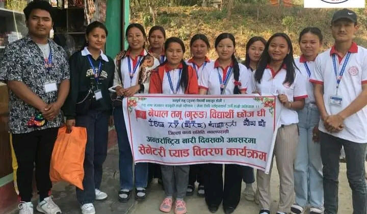 नवलपरासी । नेपाल तमू ( गुरुङ ) विद्यार्थी छोंज धीं,जिल्ला कार्यसमिति नवलपरासीले ११३ औं अन्तराष्ट्रिय श्रमिक महिला दिवसको अवसरमा जिल्लाका विभिन्न स्थानमा नारी सचेतता कार्यक्रम सँगै निःशुल्क रुपमा सेनिटरी प्याड वितरण गरेको छ ।