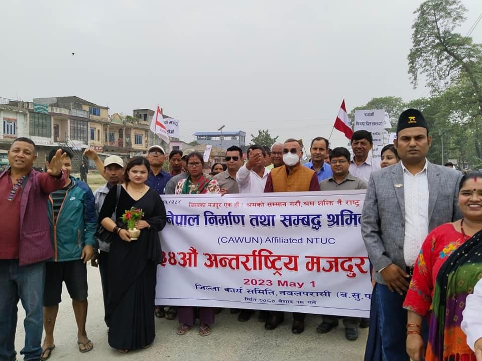 सुनवल । आज मे १ तारिख, अन्तर्राष्ट्रिय श्रमिक दिवस । सामाजिक सुरक्षा, मर्यादित श्रमः श्रमको सम्मान राष्ट्रको अभियान भन्ने नाराका साथ १३४ औ अन्तराष्टिय मजदुर दिवस मनाईएको छ ।