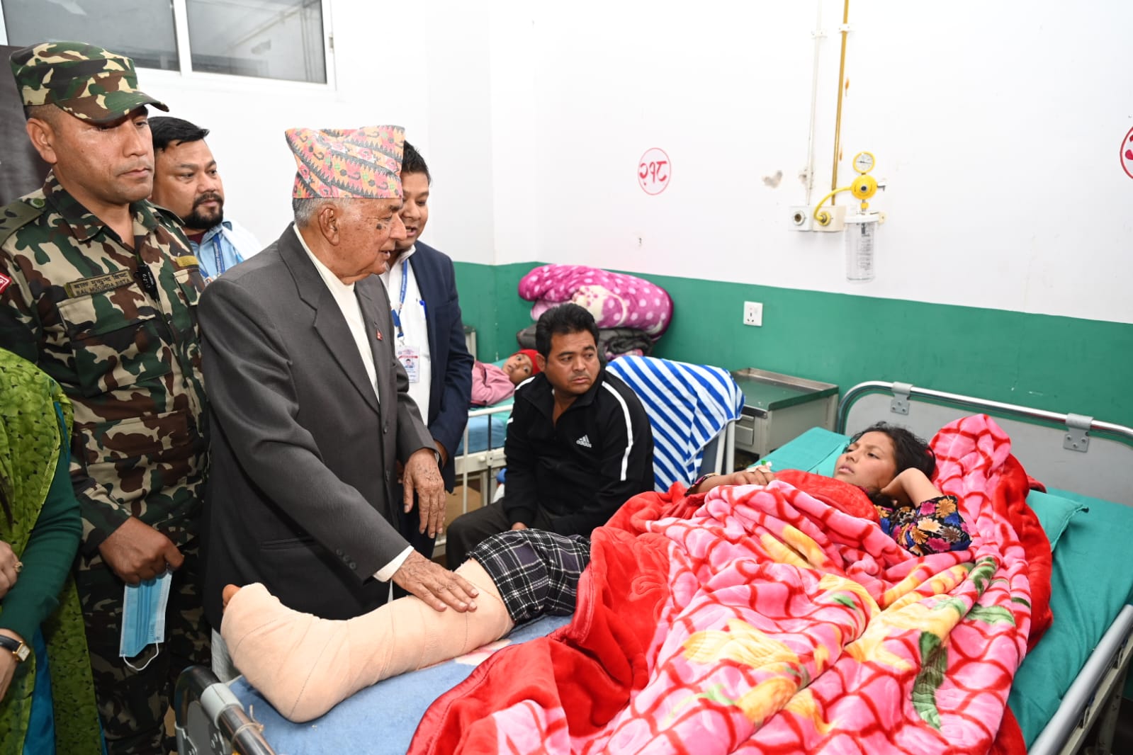 गत शुक्रबार राति गएको भूकम्पबाट प्रभावित नागरिकहरुको अवस्था बुझ्न राष्ट्रपति पौडेल मंगलबार बिहान जाजरकोट पुग्नुभएको थियो । उहाँले जाजरकोट सदरमुकाम खलङ्गको जिल्ला अस्पतालमा घाईतेहरुलाई भेटनुभयो भने त्यहाँको भूकम्पले क्षतिग्रसत क्षेत्र तथा पीडितहरुसँग कुराकानी गर्नुभयो । त्यसपछि उहाँ भूकम्पको केन्द्र बनेको जाजरकोटको रामीडाँडा पुगेर भूकम्पबाट प्रभावितको राहत र उद्दारको अवस्थाका बारेमा जानकारी लिनुभएको थियो ।